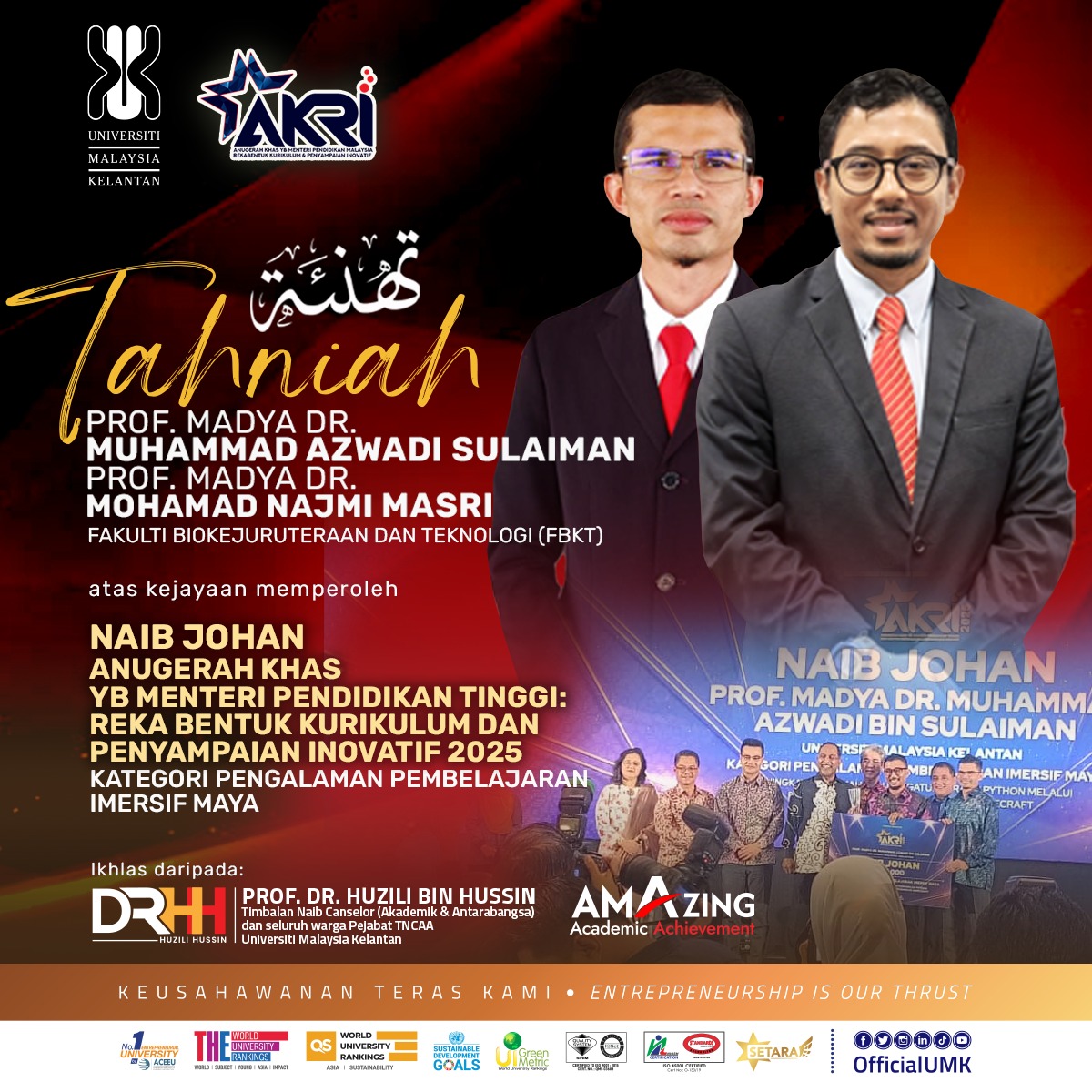 UMK NAIB JOHAN ANUGERAH KHAS YB MENTERI PENDIDIKAN TINGGI REKABENTUK KURIKULUM DAN PENYAMPAIAN INOVATIF (AKRI) 2025 BAGI PROJEK KEMAHIRAN PENGATURCARAAN PEMBELAJARAN IMERSIF BERASASKAN MINECRAFT